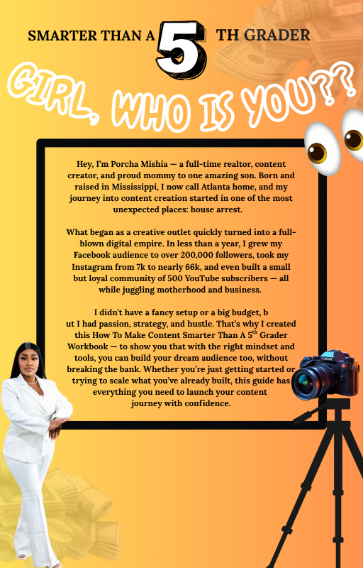 This workbook isn’t filled with fluff or fancy talk — it’s a step-by-step blueprint on how to become a content creator from scratch, even if you have zero followers, no expensive camera, and no clue where to begin. Whether you’re trying to grow a business, build a personal brand, or just turn your voice into influence — I got you.